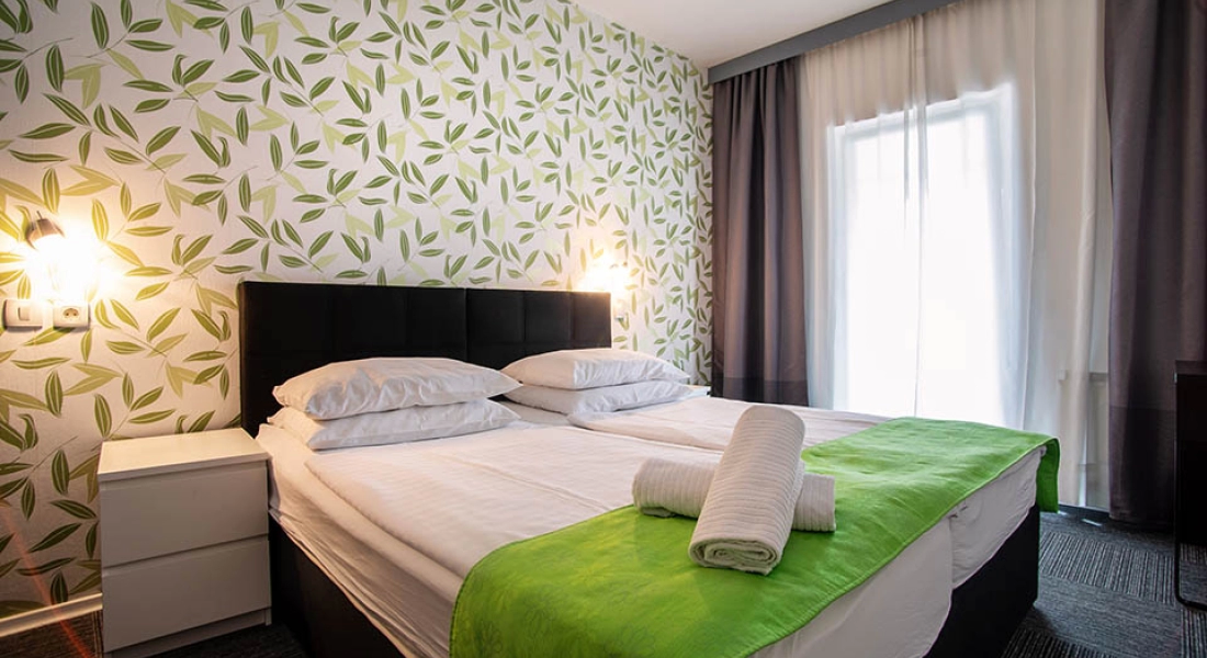 Moderno opremljene sobe z balkonom vam nudijo vse udobje, ki ga potrebujete. V hotelski recepciji vam med drugim na voljo tudi bar in brezplačna izposoja koles.